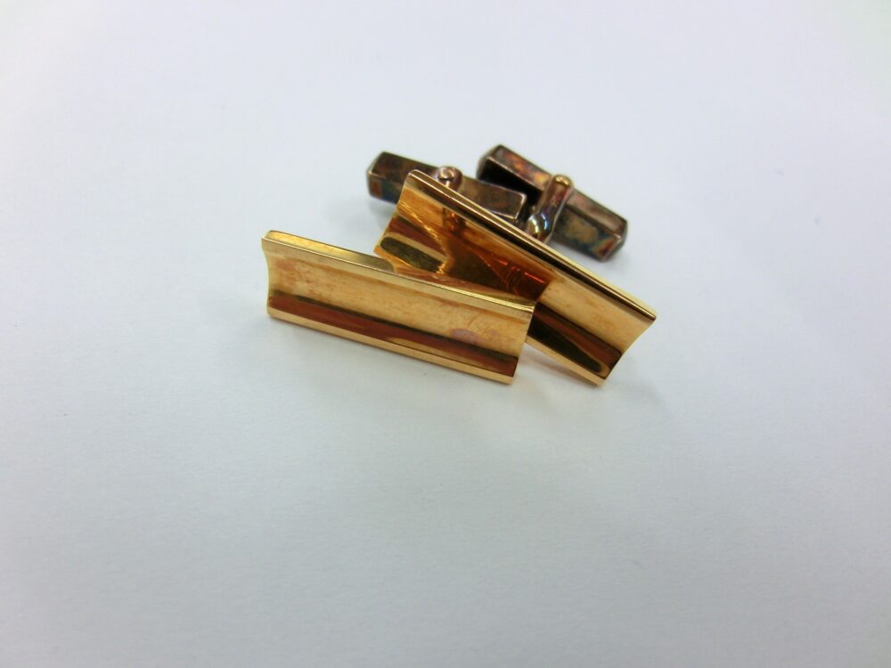 いただいた、K18のネクタイピンとカフスボタンの買取商品です。